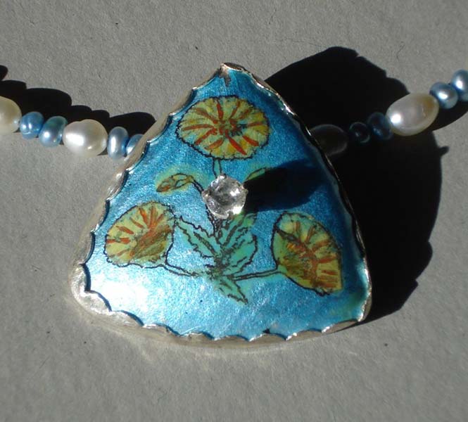 Creating three-dimensional objects with metal give me the freedom to express myself. I use one-of-a-kind stones and different colors of metal as well as vitreous enamels to add color to my work. I mostly work with silver and copper but I’m also interested in working with other materials like gold, brass, wood, glass, plastic (take a look at my recycled earrings). Many times my designs originate in my dreams. Always looking at everything that surrounds me, I get my ideas from nature as well as shapes of buildings or shadows on the ground. I like to use bright colors in my work since bright colors represent the way I think about life. I think that if you like a piece of art it is worth showing!